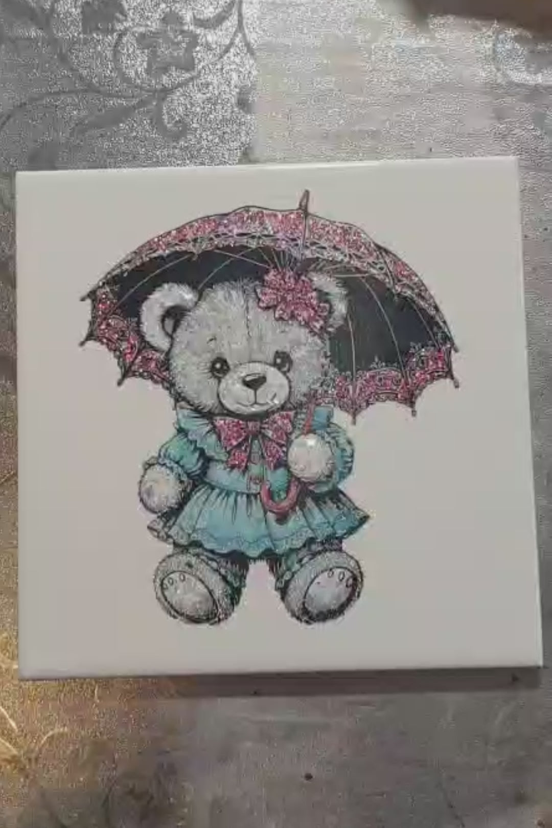 Add a touch of charm to your space with this beautifully engraved teddy bear tile, decorated with shimmering sparkly flakes that catch the light just right. Perfect as a sweet keepsake, a thoughtful gift, or a unique decorative accent for any room. Crafted with care, this piece combines timeless cuteness with a little sparkle to brighten your day.
